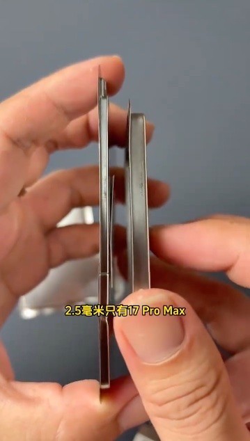 此外,该网友还和iPhone 17 Pro的电池进行了对比,从肉眼看iPhone 17 Air的电池厚度仅为其一半。